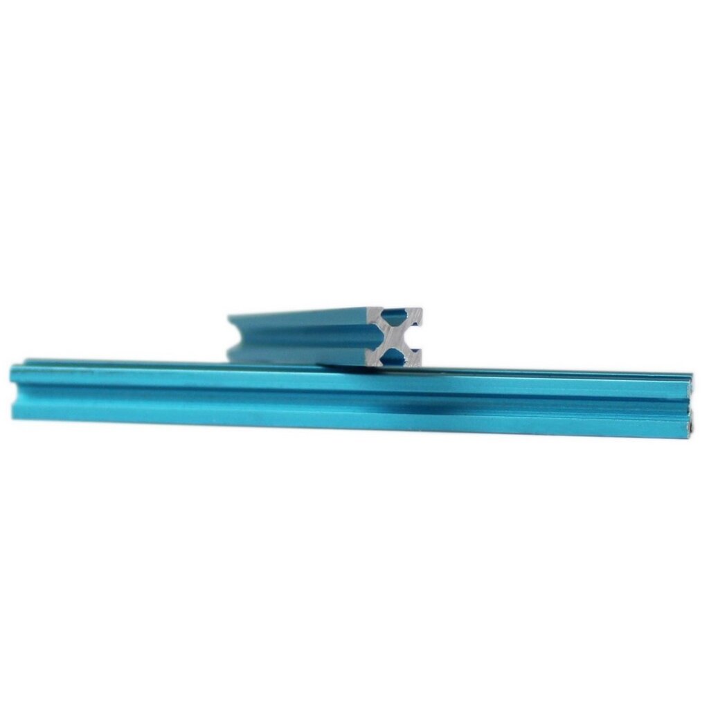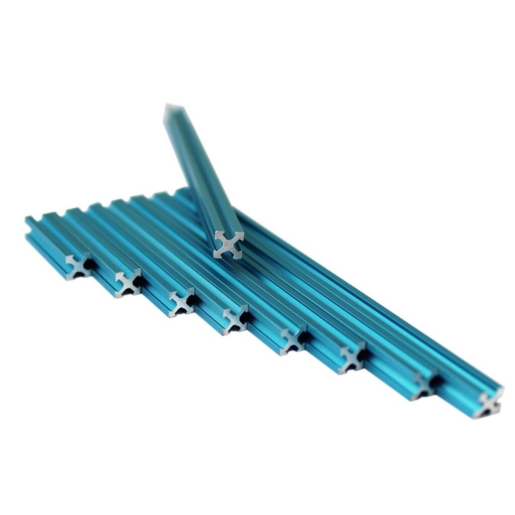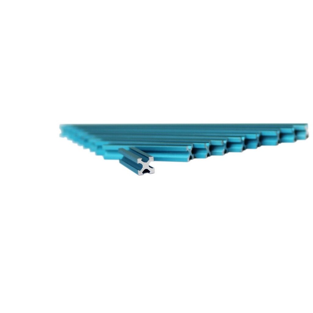 1 set of 9 pieces of blue anodised MakerBeamXS in the following lengths: 20mm, 30mm, 40mm, 50mm, 60mm, 70mm, 80mm, 90mm and 100mm. MakerBeamXS width and height = 5mm xt 5mm.